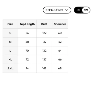 S, M, L, XL, XXL |